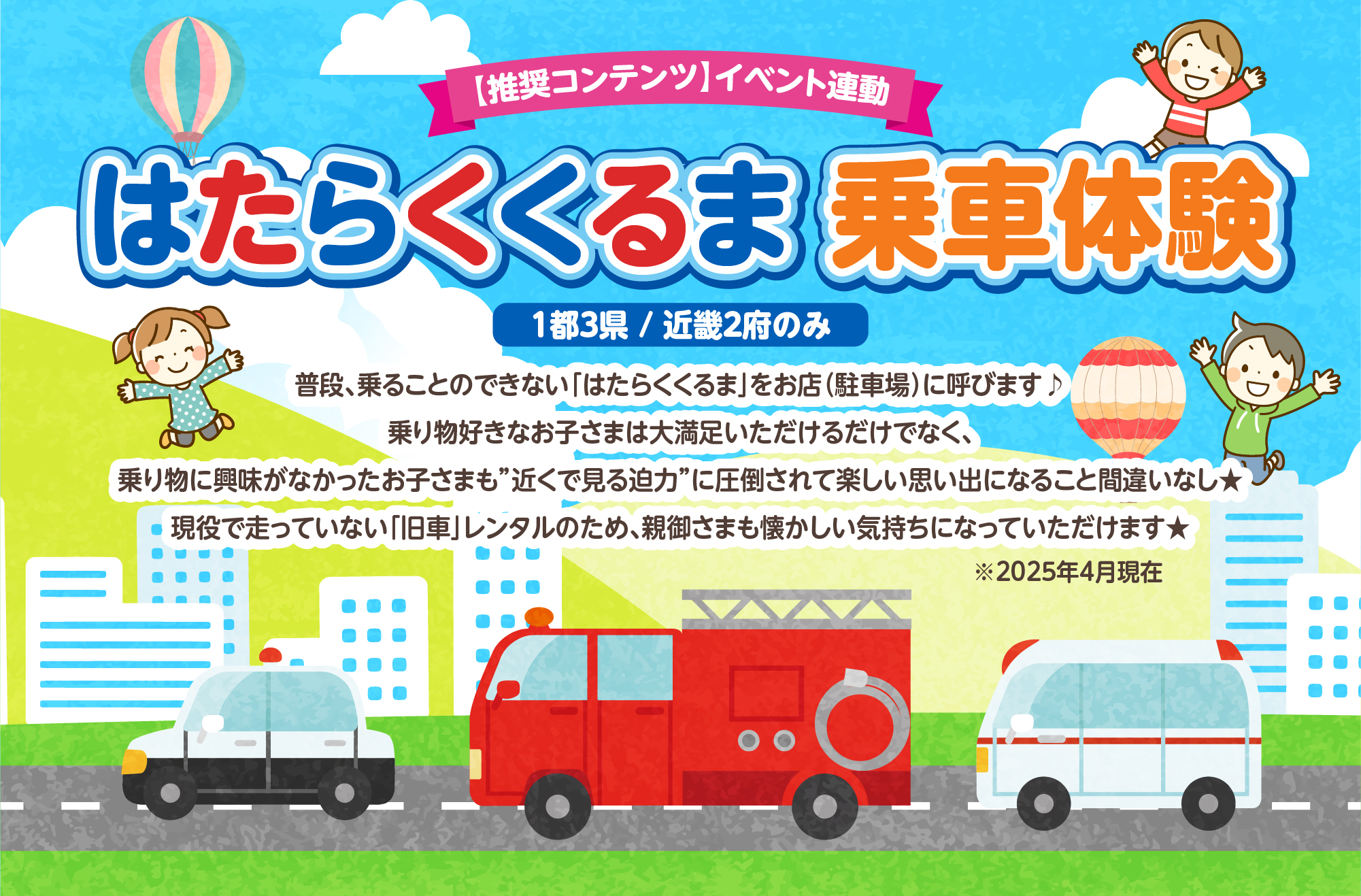| 消防車 | 価格:80,000円(税別)/88,000円(税込) ~/日 |